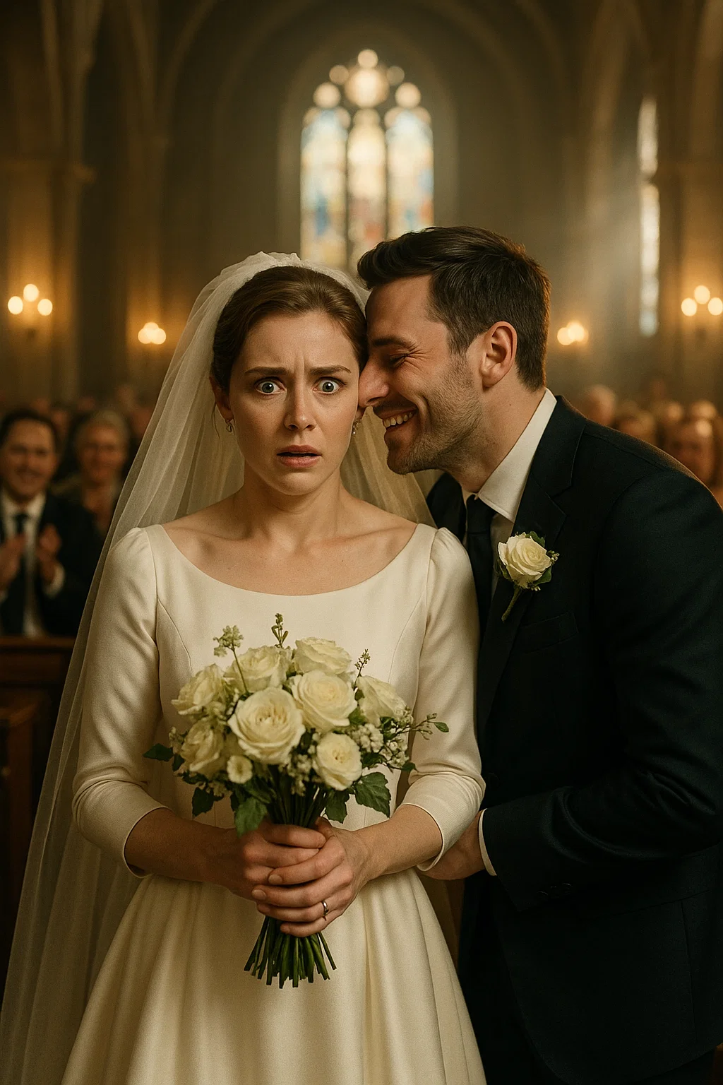 The church was glowing, sunlight pouring through stained glass, the scent of roses heavy in the air. My dress clung to me like a dream, the weight of the veil brushing my shoulders. Guests filled the pews, smiling, snapping photos, waiting for the moment that would seal our love forever. I looked at him—my groom, my almost-husband—his eyes locked on mine, his smile warm and steady. My heart raced as the pastor began the vows. But then he leaned close, lips brushing against my ear, and whispered a name. Not…