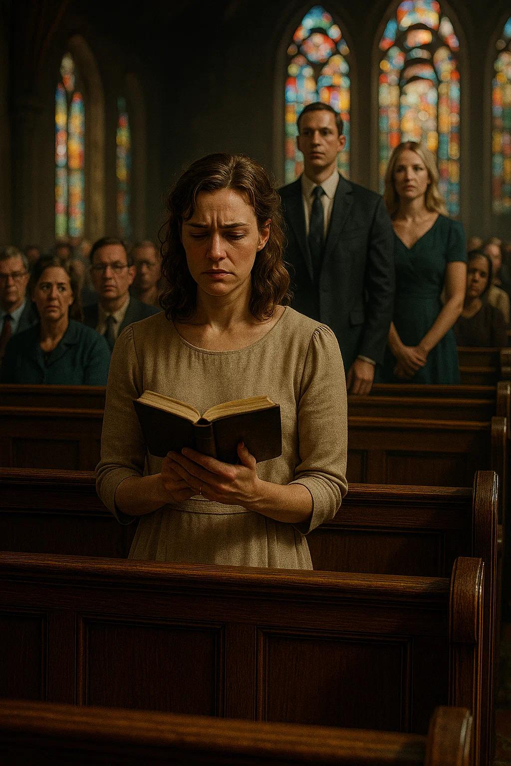 The hymn had just started when I noticed it. Everyone was standing, voices rising toward the vaulted ceiling, but my husband wasn’t at my side. I glanced to the aisle where I’d left a space for him, my hand resting on the wooden pew. Empty. He stood three rows back, eyes fixed on the altar, deliberately avoiding my gaze. My stomach tightened as whispers stirred among the congregation. This was supposed to be our Sunday ritual, our shared faith binding us together. Instead, it felt like a public rejection I…