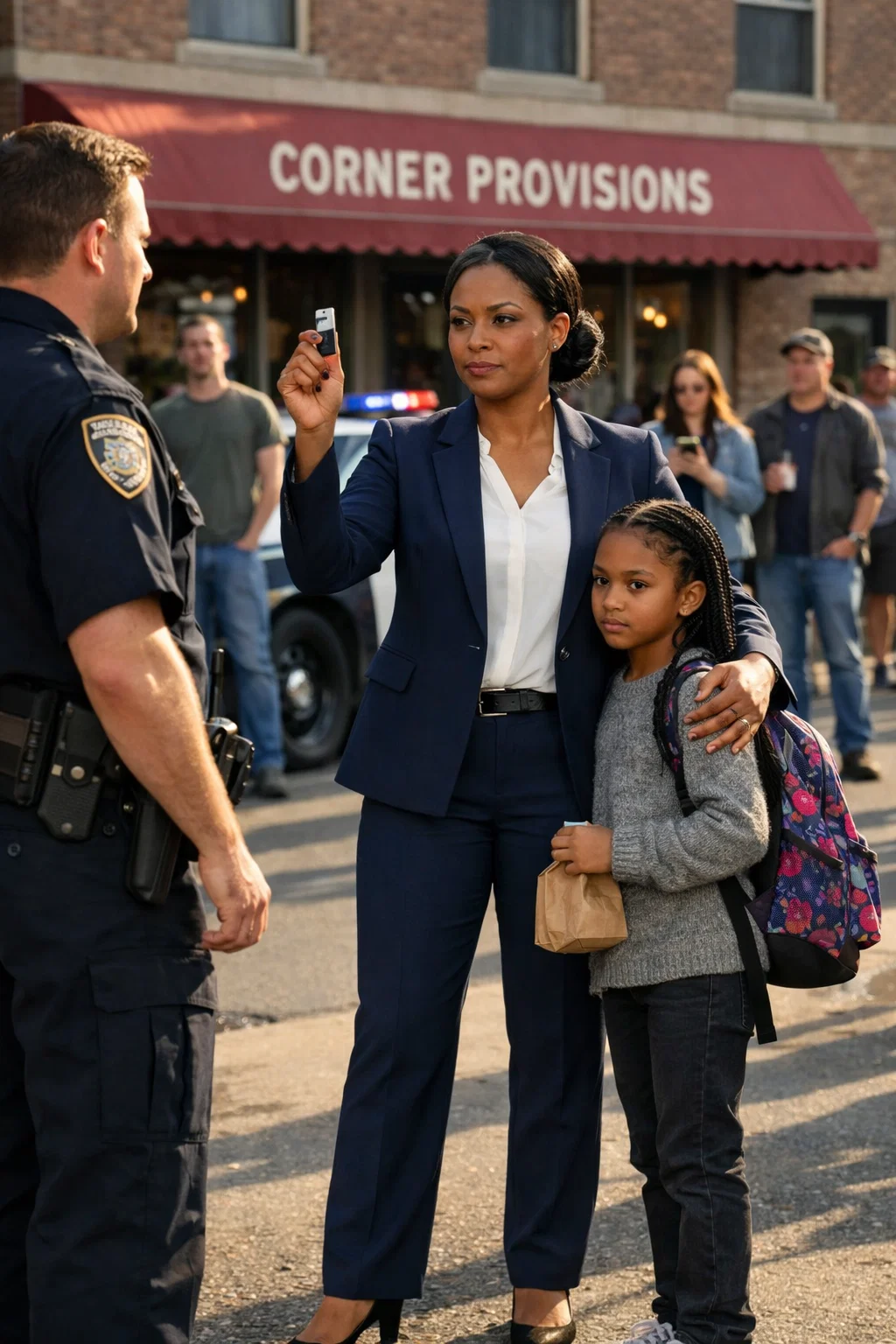 Oak Creek, Virginia looked harmless in the afternoon sun—brick storefronts, a park with a worn swing set, a two-lane road where everyone pretended they knew everyone. Ten-year-old Nia Brooks walked out of the corner market with a small paper bag of cough drops and a juice box, the kind of errand her mom trusted her to handle because it was two blocks and broad daylight. She didn’t notice the patrol car until it swung in too fast and stopped at an angle like it was blocking an escape route. Officer Dylan Hargrove stepped…