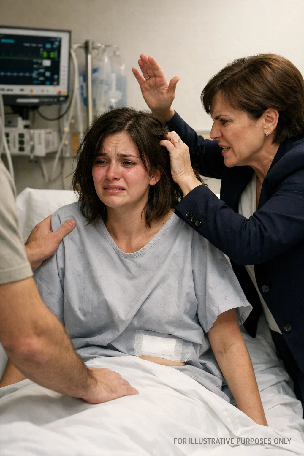 The lights in Mercy Harbor Hospital were painfully bright. Too white. Too sterile. Too unforgiving. Only hours earlier, surgeons had cut me open to bring my baby into the world. My body still felt foreign — stitched, swollen, trembling under a thin hospital blanket that did nothing to shield the ache radiating through my abdomen. Machines hummed. Monitors blinked in steady rhythms that felt cruelly calm compared to the storm inside me. Beside my bed, in a clear plastic bassinet, slept my daughter. A tiny pink bundle with a hospital…