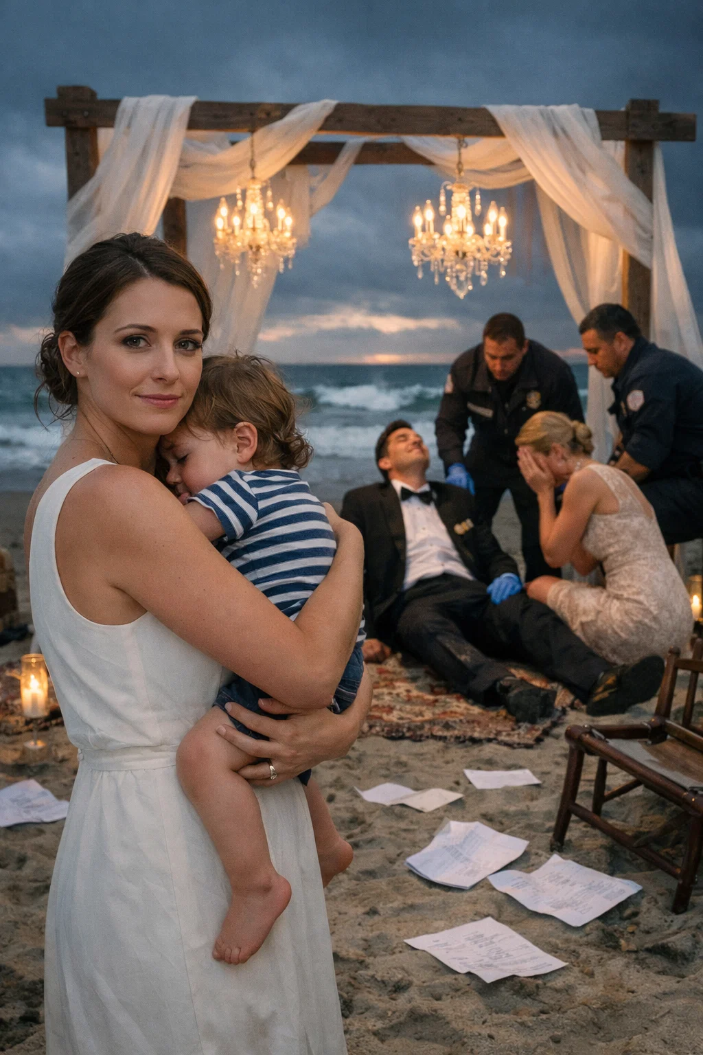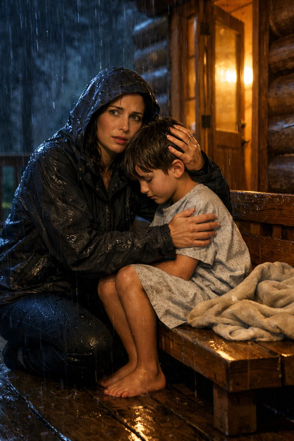 The rain did not just fall; it attacked. It drove down from a pitch-black sky in freezing, relentless sheets, turning the suburban driveway into a rushing river of icy water. The wind howled through the bare branches of the oak trees, sounding like a chorus of grieving ghosts. I barely felt the cold. All of my senses, every ounce of my primal awareness, was focused entirely on the small, trembling weight in my arms. My eight-year-old daughter, Mia, was wrapped in a thick wool blanket that was rapidly becoming soaked.…