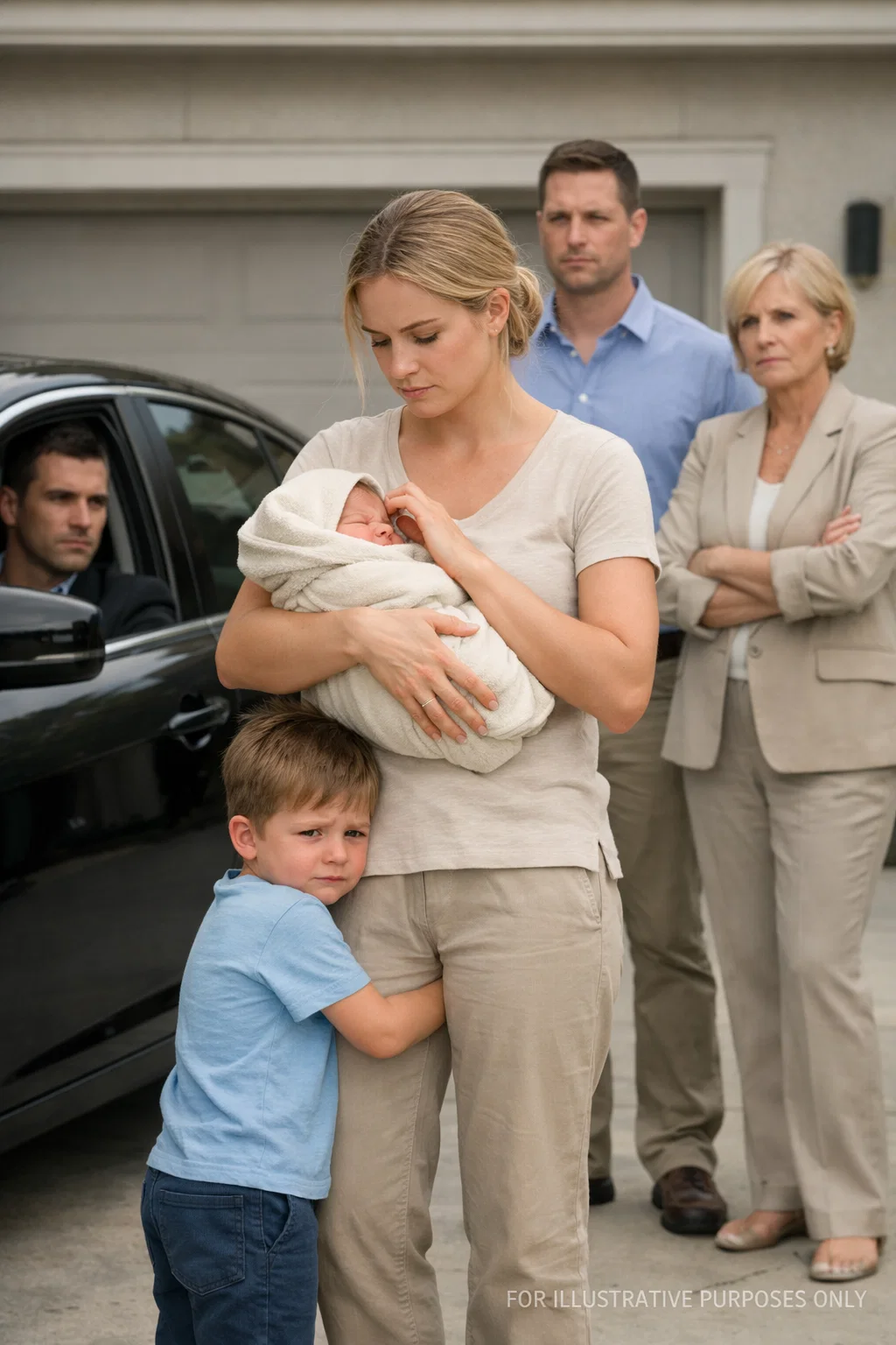 The heat pressed down on my shoulders like something alive, heavy and unrelenting, while I lifted my hand to shield my newborn daughter’s face from the harsh Texas sun, even though my arm trembled from exhaustion and the quiet fear I refused to name. My other hand held tightly onto my five-year-old son, whose fingers clung to mine with desperate strength, as if he already understood that something permanent had just shifted, even though he was still too young to explain the panic rising in his chest. Behind us, the…