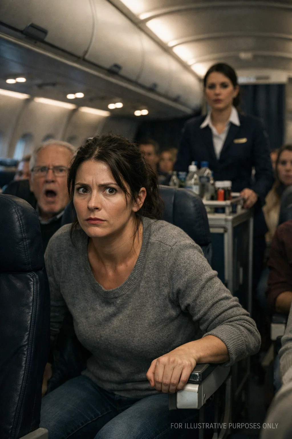 The cabin had been silent. Dim lights stretched across the length of the aircraft, casting a soft glow over rows of sleeping passengers. The steady hum of the engines blended into the background, the kind of sound people stop noticing once they’ve surrendered to the rhythm of a long overnight flight. Blankets were pulled up, heads leaned against windows, and time itself seemed to slow somewhere above the clouds. Then the captain’s voice shattered everything. “Any fighter pilots on board?!” It wasn’t calm. It wasn’t controlled. It was raw, edged…