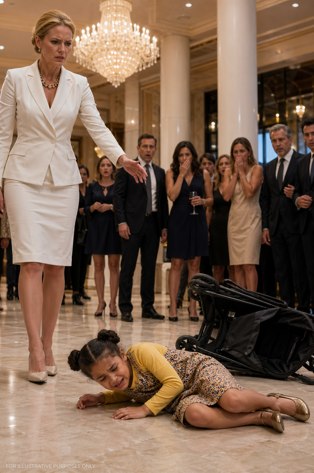 The afternoon sun poured through the towering arched windows of the Grand Plaza Hotel in the heart of Manhattan, illuminating the pristine Italian marble floors and casting golden reflections off the cascading crystal chandeliers. It was a sanctuary of wealth and privilege, an ecosystem where the slightest deviation from perfection was immediately addressed. Sitting quietly near the grand piano was a seven-year-old girl named Maya. With her light brown skin glowing in the sunlight, she sat in a standard medical wheelchair, gently clutching a worn, handmade cloth doll. She was…
