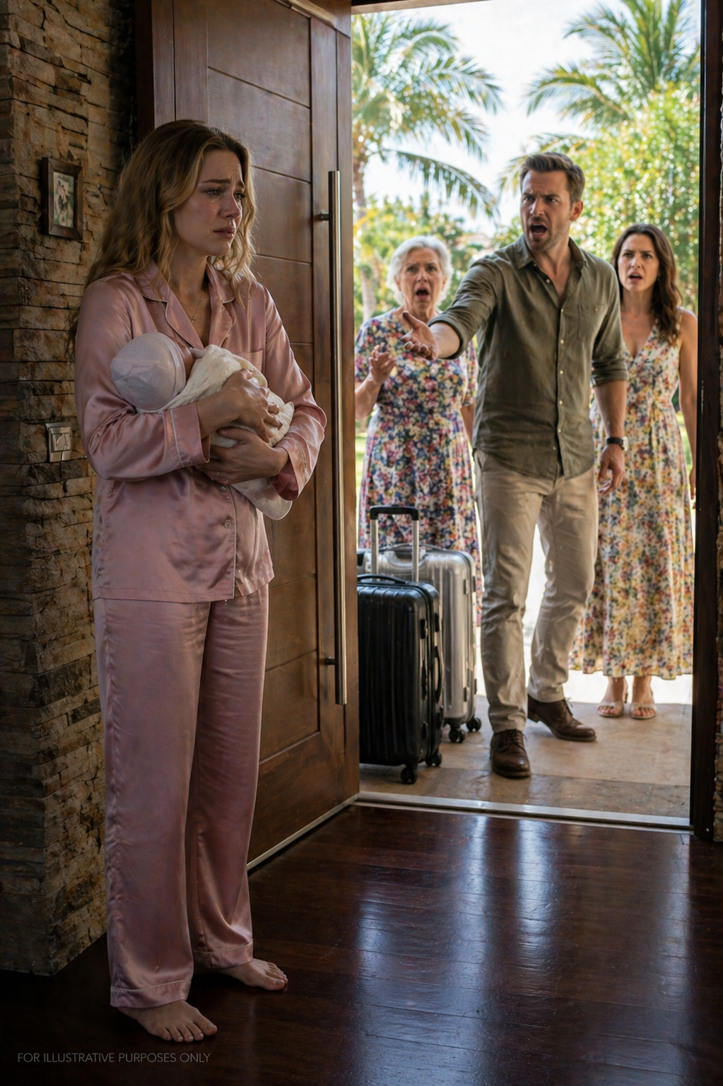 My mother-in-law glanced at my 38-week belly, turned to my husband, and said, “lock both doors and let her handle the birth on her own,” before heading off on a luxury trip to Miami—paid for with my money. Seven days later, they came back sun-kissed, smiling, dragging suitcases stuffed with shopping… but one look at the front door told them they had crossed a line they could never undo. The first contraction hit me hard as I was sitting on the couch, just as my mother-in-law zipped up her final…