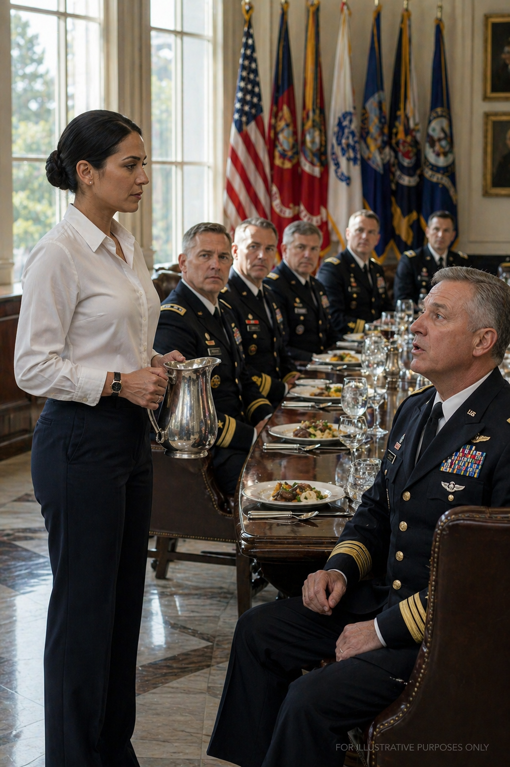 The first thing Elena Rodriguez noticed was Captain Morrison’s hand moving toward his jacket. Not his face. Not the way his confident smile fractured when General Thomas Blackwood said her old rank aloud. Not even the frozen horror spreading around the officers’ dining hall like spilled ink. It was the hand. Three years of serving coffee to powerful men had taught Elena that hands told the truth before mouths did. Hands trembled. Hands reached. Hands hid things. And Captain Morrison’s right hand was sliding slowly, carefully, toward the inside pocket…