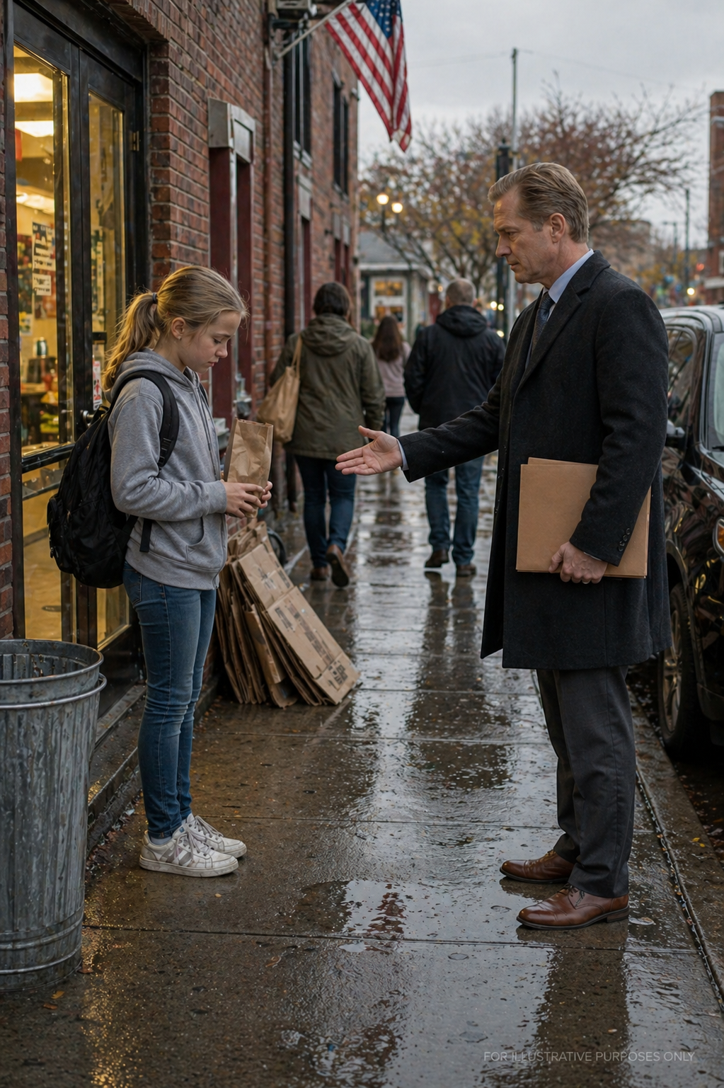 The first thing I felt was the pressure on my sleeve. Not a tug. Not a polite touch. A grip—tight enough to pull the stitching of my $900 suit into a thin, strained line across my arm. I turned. A boy stood there. Ten, maybe. Dirt on his cheeks, hair uneven like it had been cut without a mirror. His sweatshirt hung too big for his frame, one sleeve longer than the other. A torn backpack sagged off his shoulder, and a cracked plastic bottle knocked softly against his hip…