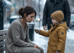 The little girl stepped closer to the bench, then closer to the woman, then asked in a trembling voice: