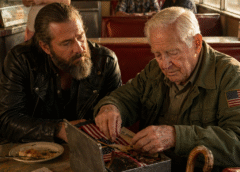 The old man nodded once, like he didn’t want to make a big deal out of it. He lowered himself into the seat slowly, like sitting down took more effort than it should. Then he wrapped both hands around the coffee mug the waitress set in front of him, holding it like it was grounding him to the moment.