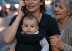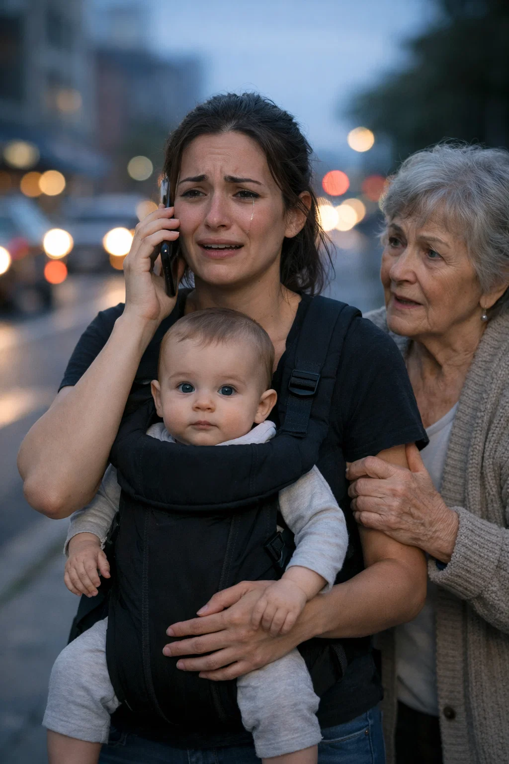 A strange old woman suddenly seized my wrist as I carried my baby up the steps. “Don’t go inside. Call your father—someone is waiting behind that door,” she whispered in terror, staring at my dark house. I laughed nervously and told her my father had died eight years ago. But out of curiosity, I dialed his old number anyway… and when a man answered and spoke one sentence, my blood ran ice cold.