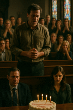 His face was pale, his hands trembling as he clutched the back of the pew. He cleared his throat, his voice shaking but loud enough to carry through the silence. “I can’t sit here and keep pretending. I’ve sinned. Terribly. And the man I’ve sinned against is right here.”