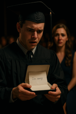 The Build-Up: The night before graduation, I sat at my desk, diploma case in front of me. He’d left it there after rehearsal, trusting me to hold onto it. My hands trembled as I slipped the letter inside. I poured everything into it—my pain, my anger, my exhaustion. “You broke me in ways you’ll never understand. I thought I’d spend this day celebrating us, but instead, I’m choosing to let you go. This is your future. I won’t be in it.”