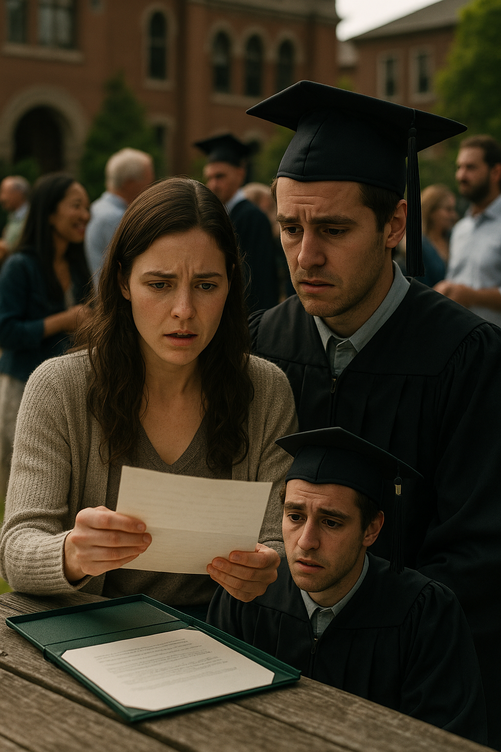 It wasn’t until later, when the crowd thinned and we were sitting at a café celebrating with coffee and cake, that he opened the case. I leaned forward eagerly, waiting to see the degree inside, waiting to feel the pride of holding it in my hands. But when the flap lifted, there was no diploma. Just a folded piece of paper, neat and deliberate.