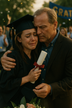 The stadium buzzed with excitement, rows of graduates adjusting caps and gowns while families waved banners and cameras flashed. I had dreamed of this moment for years—the walk across the stage, the diploma in hand, the proud smile on my father’s face. He had always told me he was proud, always reminded me of the sacrifices he made so I could study without worry. That day was supposed to be our shared victory.