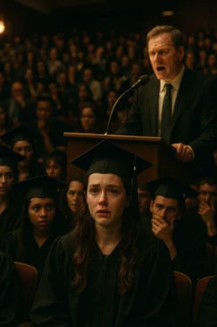 When the ceremony began, I scanned the crowd, spotting my family in the front row. My father’s face was pale, his jaw tight, but I thought nothing of it. The speeches began—professors praising hard work, the principal reminding us of our bright futures. Then my father stood. He had been invited as a guest speaker, well respected in the community. Pride swelled in my chest as he approached the podium. I straightened in my chair, waiting for his words.