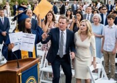 I was twenty-two that day, standing beneath the California sun at UC Berkeley, my graduation gown brushing against my legs as if even the fabric understood how fragile the moment was. The courtyard stretched wide and bright, filled with rows of proud families, bouquets wrapped in crinkling plastic, and the constant flicker of cameras capturing futures that hadn’t yet been tested.