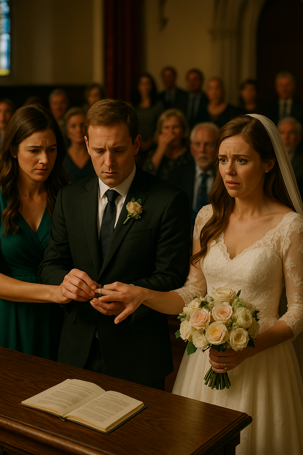 I forced the ceremony to continue, my smile brittle, my hand icy as Daniel finally slipped the ring where it belonged. But the magic was gone. The vows we finished felt hollow, the kiss at the altar staged.