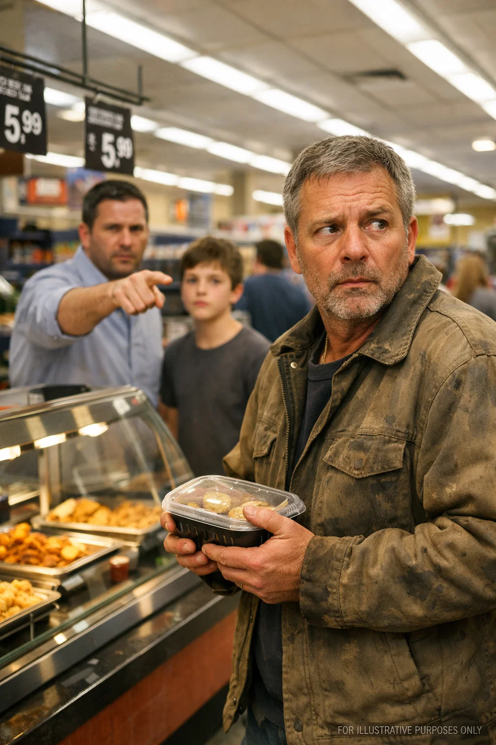 A man pointed at my grease-streaked hands in a grocery store and told his son that’s what failure looks like. I kept quiet. But minutes later, his phone rang—and before the night ended, he was standing in front of me, apologizing.
