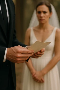 I could see it now—these weren’t hastily written vows. They were a letter, creased and worn at the folds. And as he read a few more lines, it became painfully clear: they weren’t written for me.