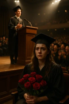 The auditorium buzzed with pride, the air thick with the smell of fresh flowers and new beginnings. Families waved handmade signs, cameras flashed, and the stage shimmered under bright lights. I sat in the front row, my heart pounding, clutching a bouquet of roses meant for him. My boyfriend, Daniel, was graduating at the top of his class, chosen to give the valedictorian speech. He had promised me this day would be ours, that his words would include me, that everyone would finally see what we’d been building together. He told me the night before: “This is the beginning of our future.”