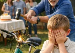The anger flared up inside me like a flame touching gasoline. I turned back to my parents. “You don’t have the right to make my kid share his bike,” I shouted, pointing at the wreckage. “And you definitely don’t have the right to destroy his property! Are you insane?”