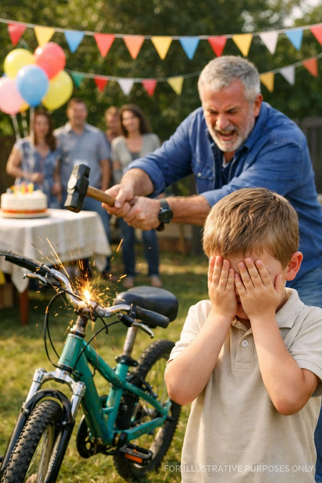 “Dad,” he choked out, his voice wet and trembling. “Grandpa smashed my bike. He smashed it.”