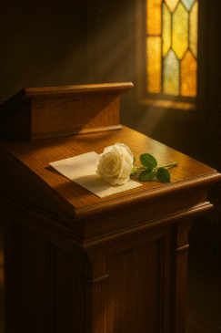 It was a man I’d never seen before. Tall, broad-shouldered, maybe in his early fifties, wearing a dark suit that seemed too formal even for the occasion. He didn’t introduce himself right away. Instead, he cleared his throat and stared down at the wooden podium for a moment before speaking.