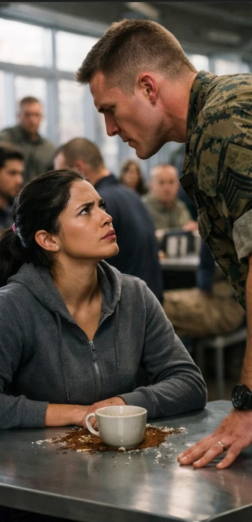 “Maybe you need help understanding where you are,” he said, setting his tray down on the edge of my table as if he owned that too. “This is a chow hall for Marines. Not a place for…” He looked me up and down slowly, deliberately. “Whatever you are.”
