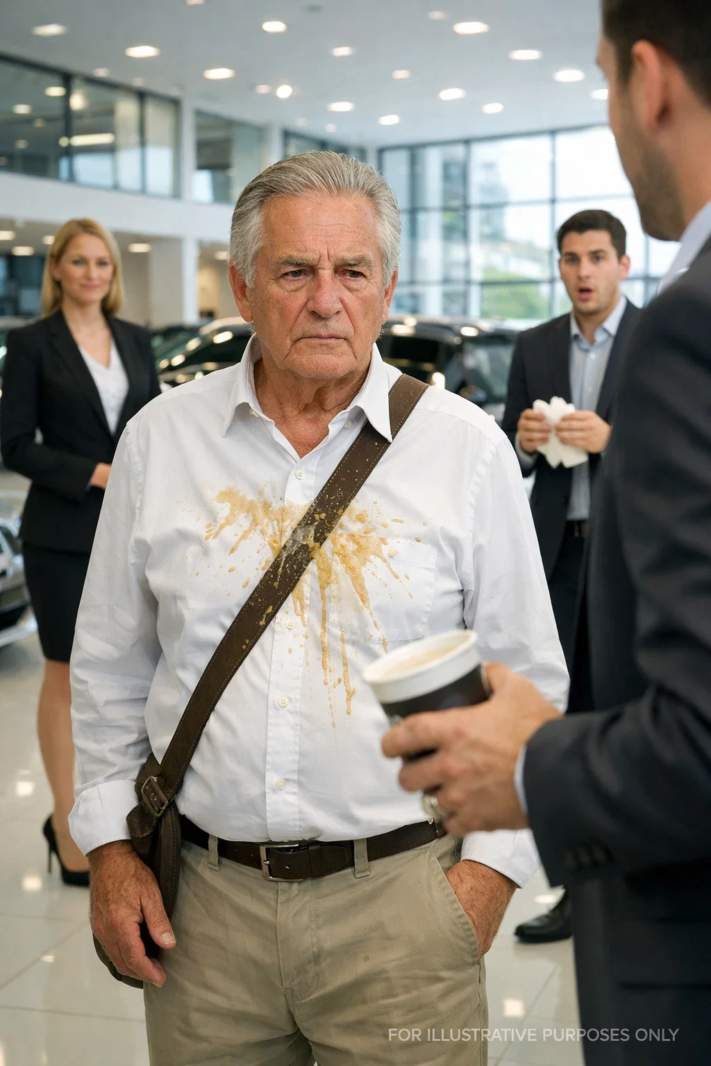‘Sir,’ he said, lifting a hand, ‘parking lot access is outside. This showroom is for customers only.’