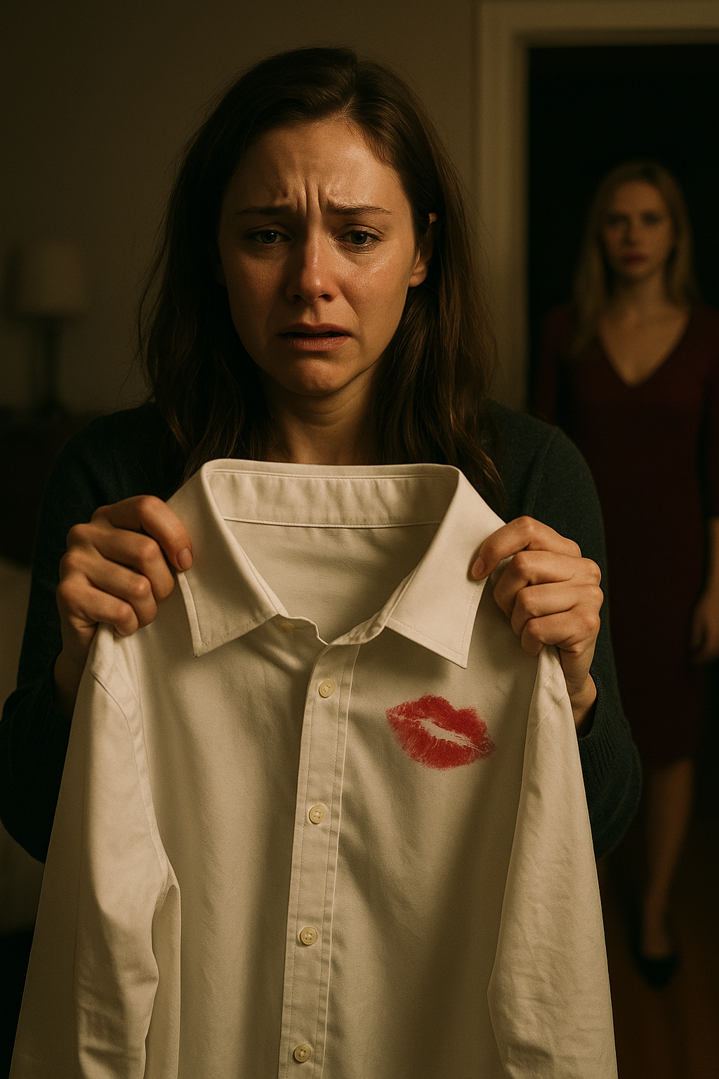 That night, I drove straight to Emily’s apartment. She opened the door with her lips painted that same crimson, her eyes wide the second she saw the shirt in my hand.