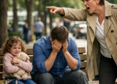 Two hard-shell cases stood beside the bench like they had been placed there with finality, not for a weekend trip, not for a delayed pickup, but for exile. My son, Ethan Cole, sat bent forward with his elbows on his knees, staring at the ground. His four-year-old daughter, Lily, leaned against his arm, clutching a stuffed rabbit by one ear. Her curls were a mess. His shirt was wrinkled. He looked like a man who had not slept, not really, for days.