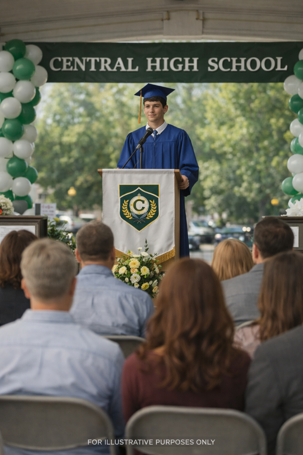 He thanked professors by name, with specific observations about each one that got quiet approving sounds from the audience. He thanked classmates. He made a joke about the accounting department that got a real laugh, the kind that comes from recognition rather than politeness. He was good at this in a way I had not fully anticipated, comfortable at the microphone, taking up the right amount of space, neither rushing nor lingering.