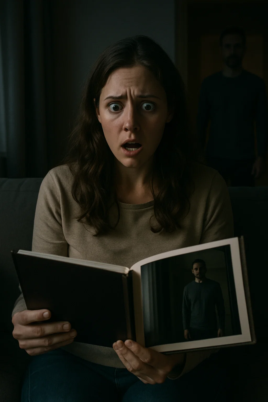 He looked at the photo, his face going pale as soon as he saw what I was pointing to. His eyes widened, and for a moment, he didn’t say anything. He stared at the photo for what felt like an eternity, his jaw tight, and I could see a mix of emotions flicker across his face—shock, guilt, fear.
