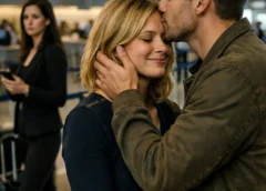 Across the concourse, near the coffee kiosk by Gate 14, my husband Ryan stood with his arms around a woman I had never seen. It wasn’t a polite hug. It was intimate—his hand spread across her back, his mouth close to her hair like he was telling her something private, something tender. The woman tilted her head and smiled like she belonged there.