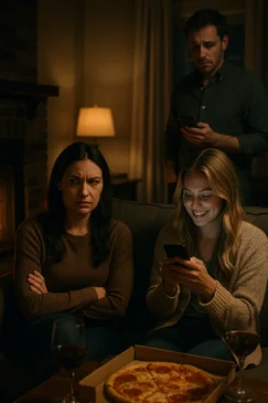 That evening was supposed to be simple. Pizza, wine, old movies. We sprawled across the couch, laughter weaving through the living room. Everything felt familiar, safe. But then I noticed her phone. The way she kept it angled toward her lap. The way her thumbs moved quickly, nervously. And then the smile—the slow, private smile she tried to hide behind a sip of wine.