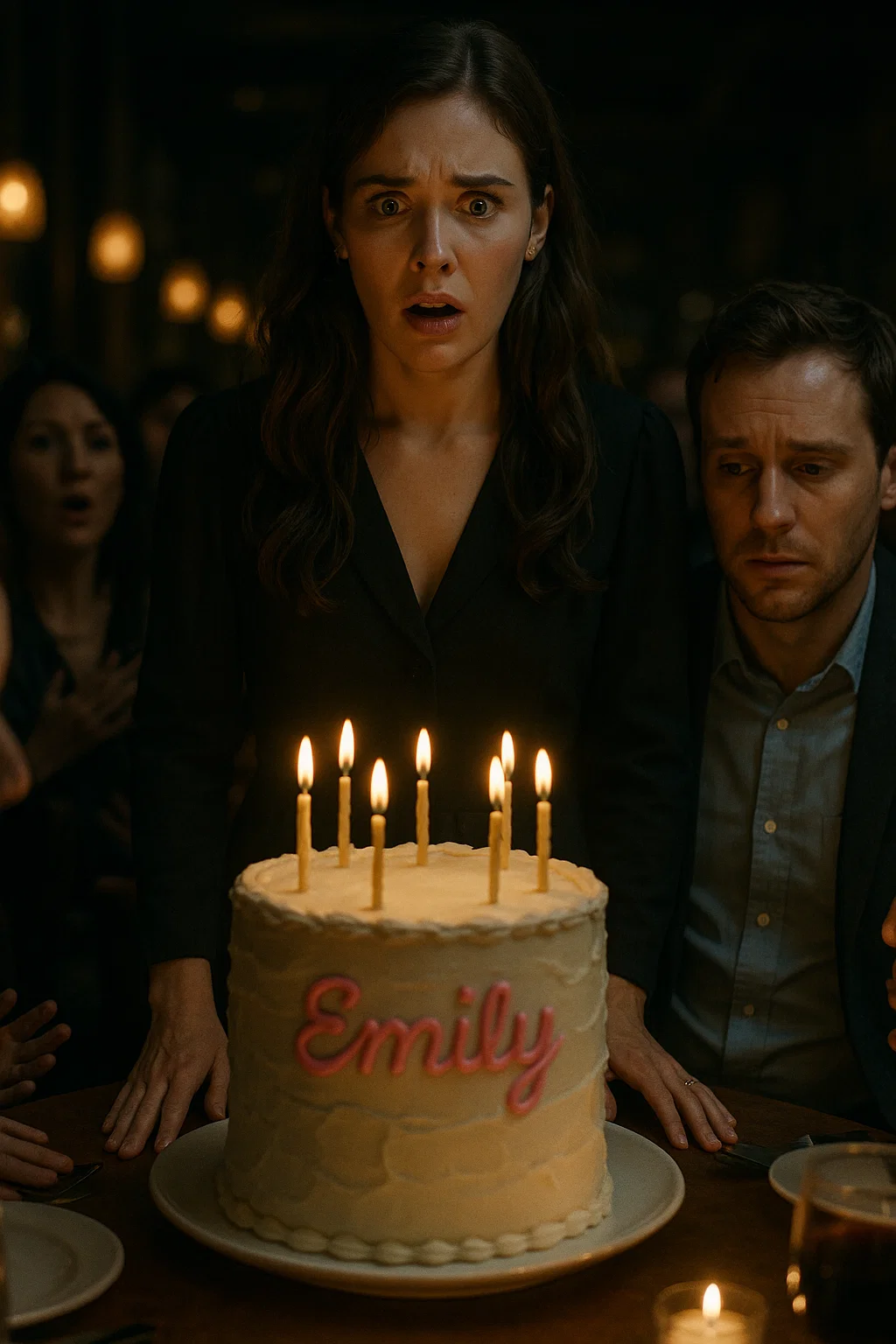Dinner was warm and noisy, laughter bouncing off the walls, wine glasses clinking. I kept thinking how lucky I was, how beautiful it felt to be surrounded by love. When the waiter dimmed the lights and rolled out the cake, my heart swelled. It was tall and elegant, covered in glossy chocolate, the kind of cake that belongs in magazines. Everyone began to sing, and I smiled so wide my cheeks hurt.