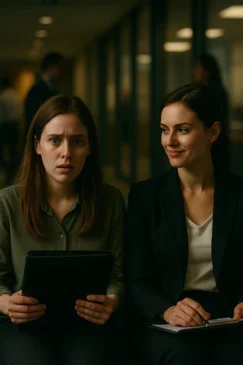 But the morning of my final interview, something felt off. My manager texted me to say the schedule had shifted—that another candidate had been added last-minute. Confused, I walked into the waiting room, and my heart dropped. There she was. Lily. Dressed in a sharp blazer, holding a portfolio, her face calm and collected.