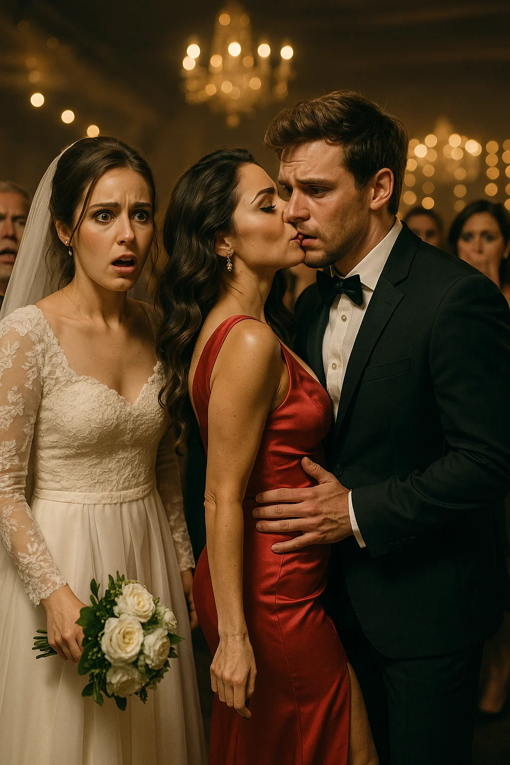 The reception lights shimmered in golden tones, the kind that make everything look like a fairytale. I had just tossed the bouquet, laughing as my bridesmaids scrambled for it, when I turned back to the dance floor and saw something that stopped my breath. My groom—my husband of less than three hours—was locked in a kiss. And not with me. With his “cousin.”
