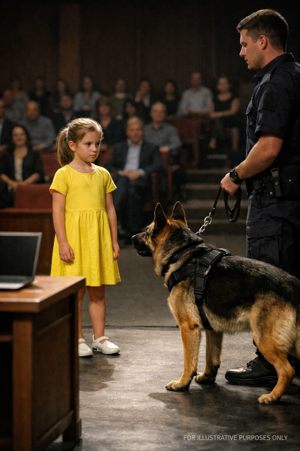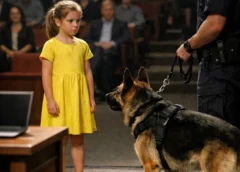 He hit the stage like a tawny lightning bolt. The audience let out a collective, piercing scream that shattered the silence. I watched in slow-motion horror as my highly-trained K9 lunged at the little girl, his weight slamming into her chest and pinning her to the polished wood floor.