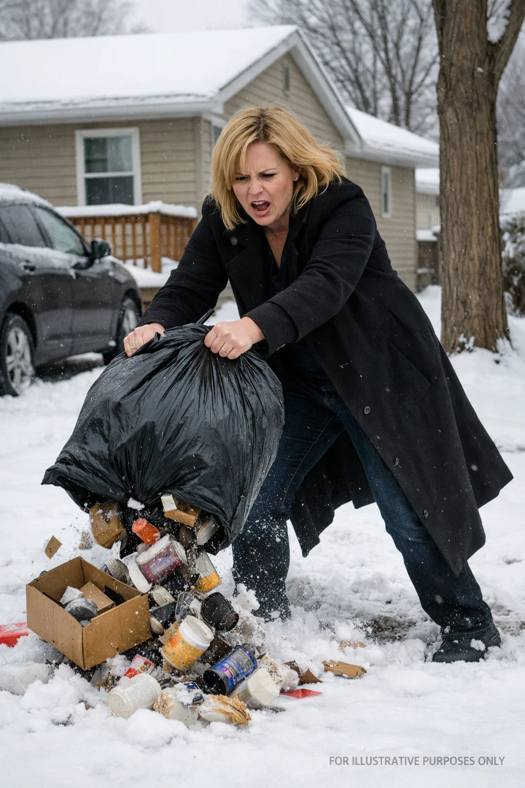 “The trash,” I said evenly. “It’s all over my yard. Under my trees.”