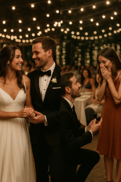 I sat frozen, my champagne glass halfway to my lips. I wanted to be happy for her, but I couldn’t believe she’d chosen my wedding to have her big moment. I saw guests turning their cameras from me and my new husband to her and her fiancé. People crowded around them, congratulating them, while I stood off to the side, suddenly feeling like a guest at my own celebration.