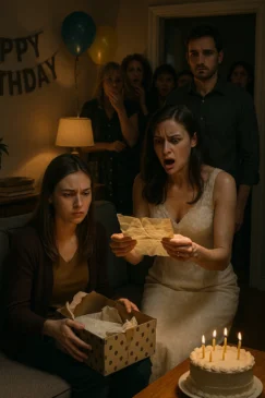 At first, I thought it was a cruel prank, a mix-up, a mistake. My smile faltered, my throat tightened, but I stayed frozen, watching her fingers trace the edges of the envelope. She frowned, her voice light but confused. “This… isn’t from you, is it?”