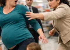 The sound was louder than a gunshot in the confined aisle. My head snapped to the side. A stinging, blinding heat radiated across my cheek. I stumbled, losing my balance, my hand flying to my face while the other instinctively shielded my unborn son.