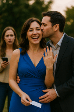 There she was. My best friend. Wearing my blue dress. Standing beside him. My fiancé. His hand wrapped tightly around her waist. A photographer caught them mid-laugh, mid-kiss. And then I saw the caption written across her smile: “She said YES!”
