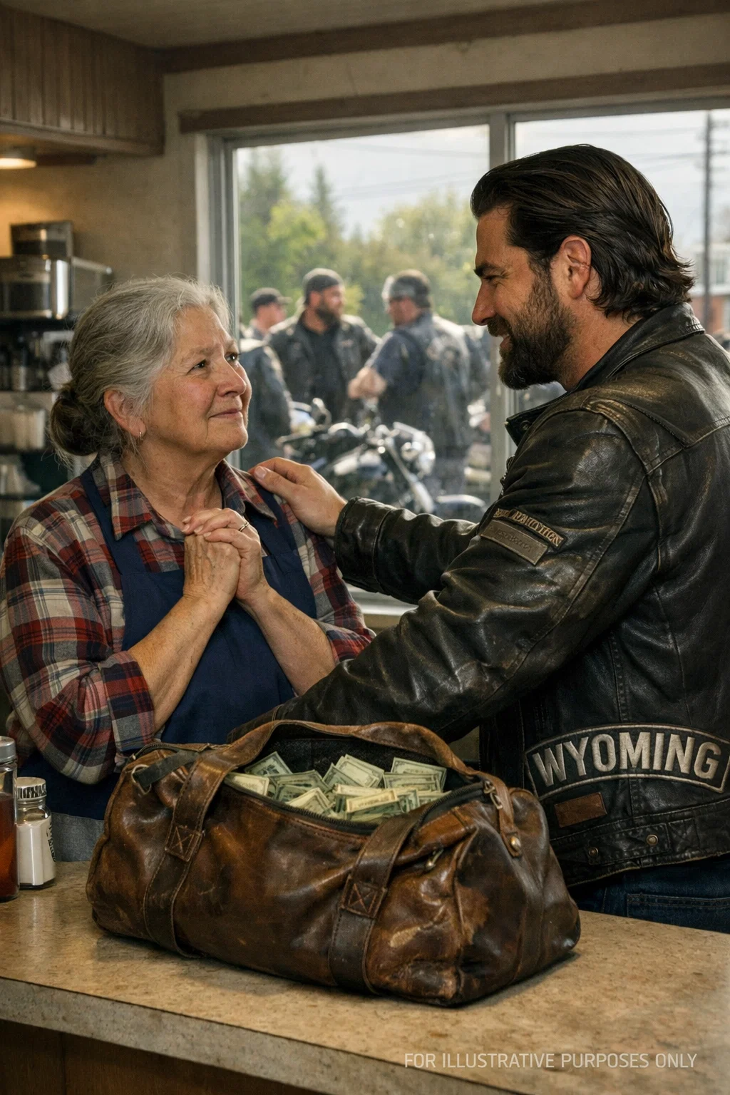 And inside the diner, Margaret Sullivan stood behind the counter, hands resting on worn laminate, staring out at the sea of motorcycles.