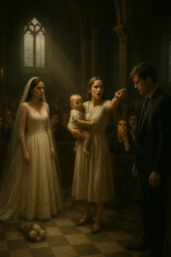 The church was silent except for the soft hum of the organ and the rustle of my gown as I walked down the aisle. My heart pounded, but it wasn’t nerves—it was joy. The flowers, the candles, the faces of everyone I loved smiling back at me. I had dreamed of this moment for years. But dreams have a cruel way of twisting into nightmares. Because just as the priest asked if anyone objected, the heavy church doors creaked open, and in walked a woman in a pale blue dress, cradling a baby in her arms.