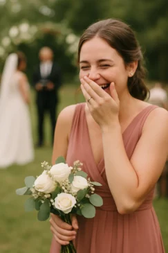 As the minister began reciting the vows, I caught a movement in the corner of my eye. It was Claire, my maid of honor and my best friend since college. She was smiling—broadly at first—but then, as Ethan repeated his vows, she started laughing. Not a polite chuckle, but a sudden, stifled burst, the kind that makes your shoulders shake. I frowned slightly, but told myself she was just nervous or emotional.