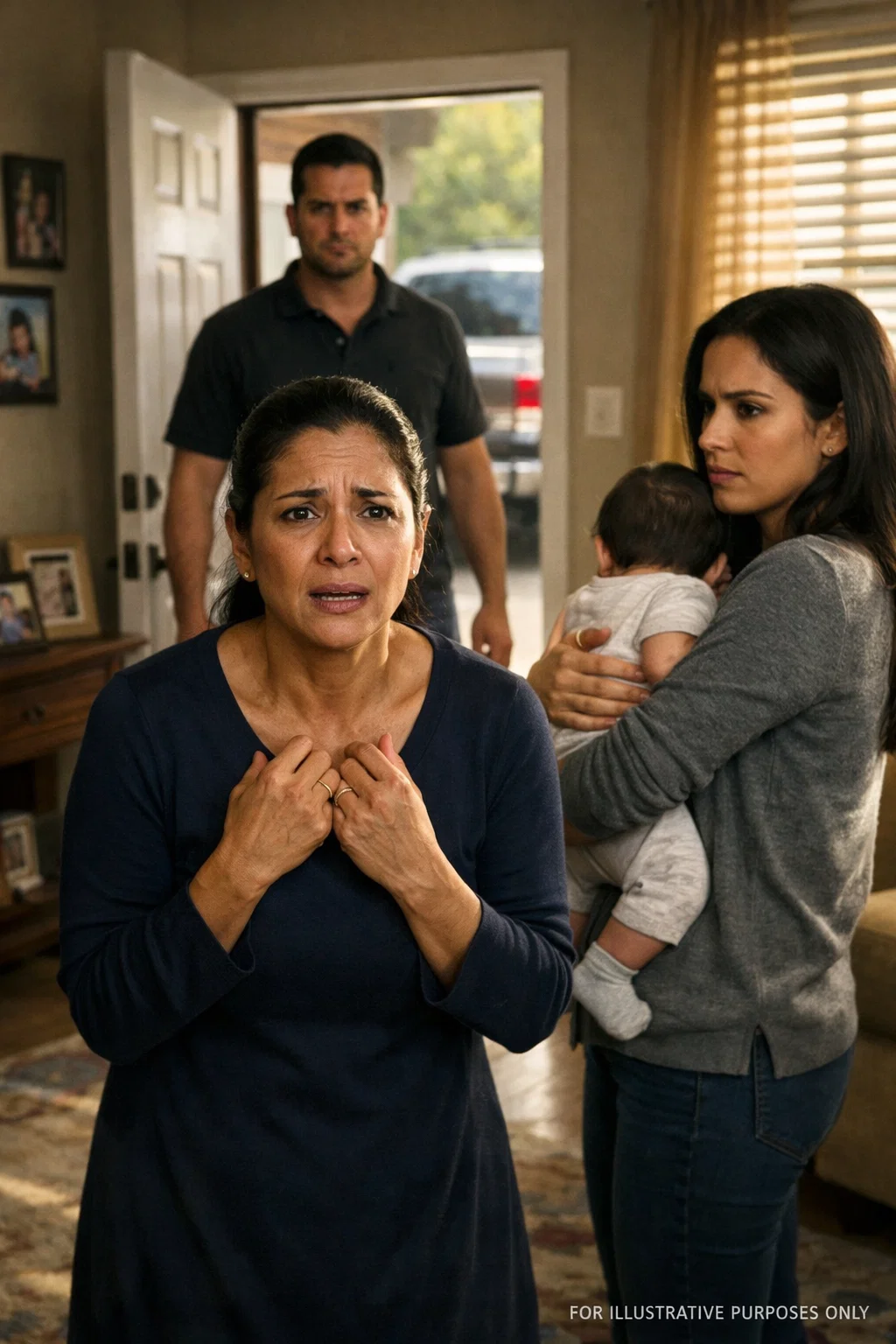 She stood in my living room, keys clutched in her hand, her baby balanced on her hip. Her husband waited in the driveway, engine idling.