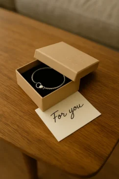 I set the box on the coffee table and grabbed a pair of scissors. The ribbon slipped off easily, and I peeled away the paper to reveal a sturdy white gift box. Inside, nestled in layers of tissue paper, was a delicate silver bracelet with a tiny heart charm. It was beautiful—exactly my style.