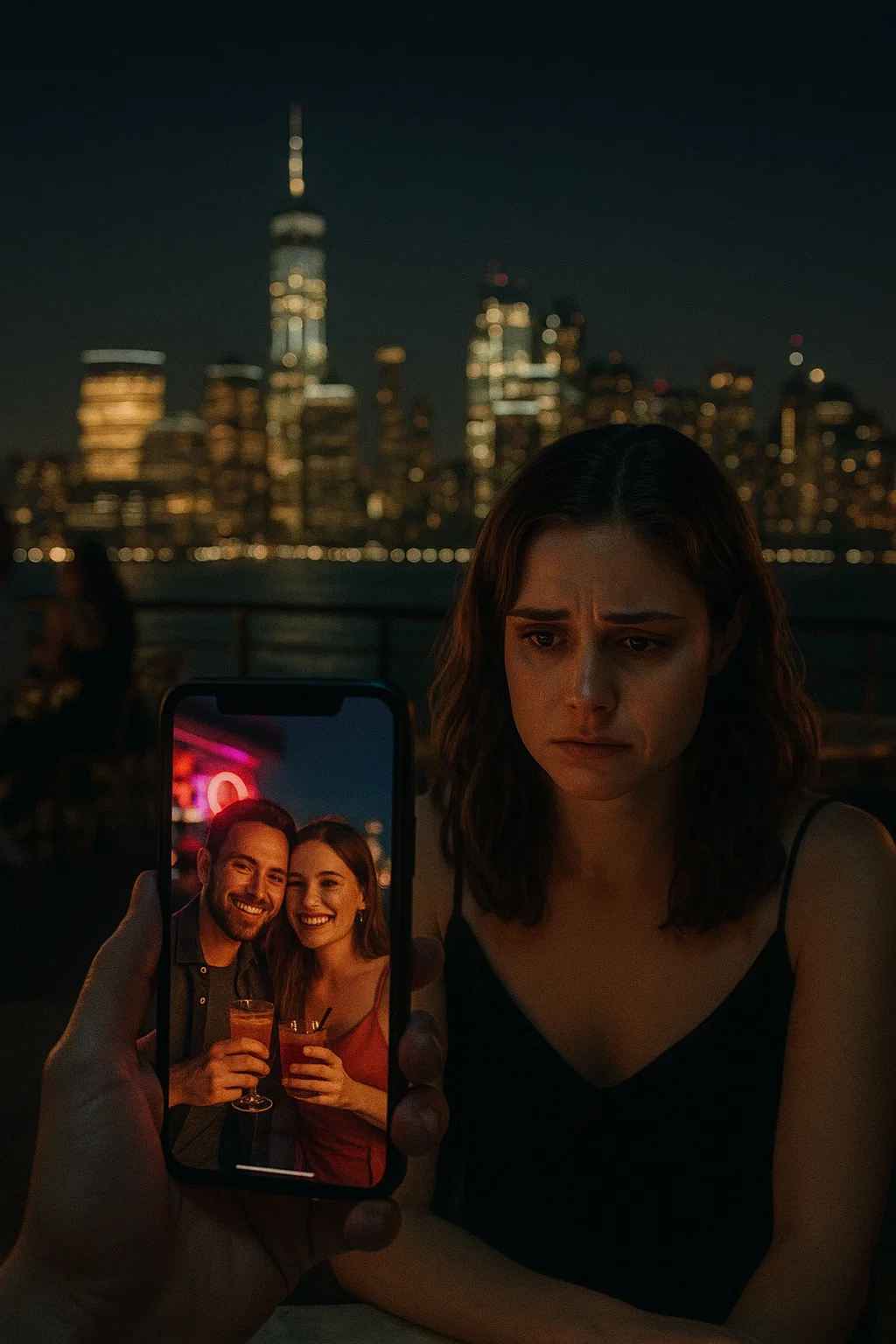 I stared at the screen, my fingers trembling as I swiped through photo after photo. The city skyline glittered behind them, cocktails raised, faces lit by neon lights. In one, Lila leaned into him, her arm brushing his, their smiles wide and intimate. My stomach flipped. My ears buzzed. It felt like the ground beneath me had tilted.